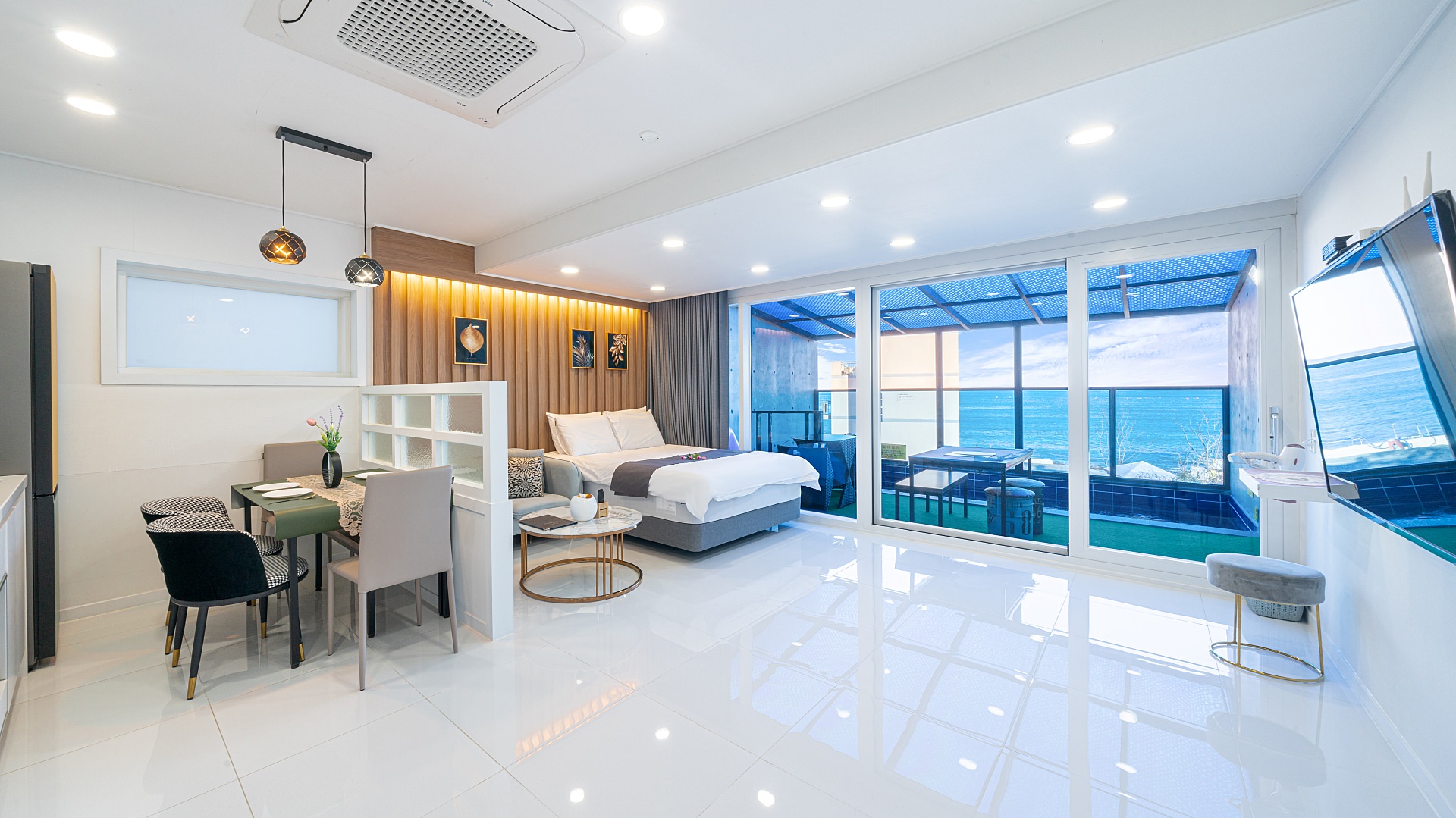 가201(수영장 미온수 28도 무료)(3,5m 개별 실내 수영장, 개별 바비큐장)